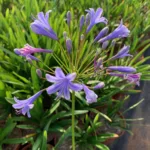 Variedad enana de Agapanthus con flores azules, ideal para macetas y borduras.