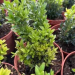 Arbusto perenne de hojas pequeñas y densas, perfecto para setos formales o topiarios.