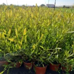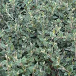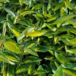 Arbusto perenne de hojas variegadas en verde y amarillo, ideal para setos o como planta decorativa.