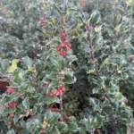 Arbusto perenne de hojas verdes oscuras con bordes espinosos, ideal para setos decorativos y resistente al frío.