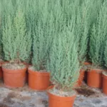 Conífera de forma columnar, con follaje azul verdoso, perfecta para jardines formales o en contenedores.