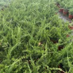 Conífera rastrera de follaje verde, ideal para cubrir suelos o taludes en jardines secos.