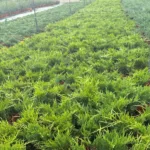 Conífera de porte arqueado con follaje verde brillante, ideal para setos o borduras en jardines soleados.