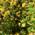 Arbusto caducifolio con flores dobles de color amarillo brillante, ideal para borduras y jardines sombreados.